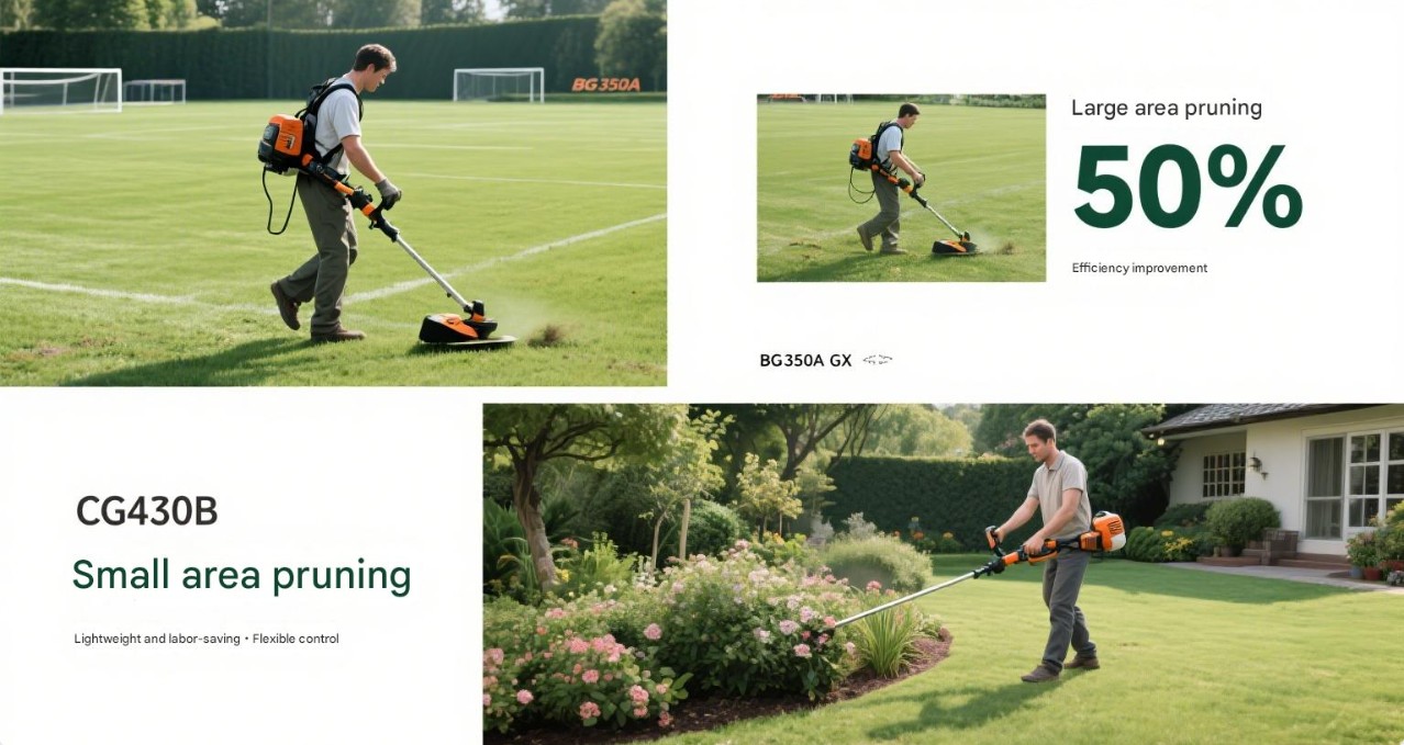 چمن زنی در مناطق کوچک: برای باغچه های کوچک و علف های هرز کنار جاده، می توانید یک ماشین چمن زنی دستی مانند Brushcutter CG145 و Brush Cutte CG430B انتخاب کنید. این مدل ها سبک و حمل آسان، کارکرد آسان، مناسب برای عملیات کوتاه مدت هستند و به راحتی می توانند با نیازهای چمن زنی مناطق کوچک کنار بیایند.