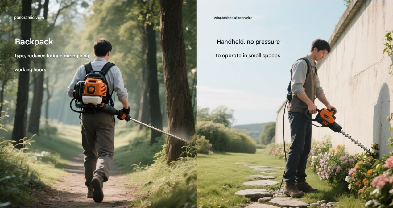 طراحی انعطاف پذیر و متنوع: برس کاتر بنزینی معمولاً شامل دو طرح کوله پشتی و دستی است که برای عملیات باغبانی در مقیاس ها و زمین های مختلف مناسب است. طراحی کوله پشتی برای چمن زنی مناطق بزرگ و زمین های پیچیده مناسب است، در حالی که طراحی دستی برای باغ های کوچک و علف های هرز کنار جاده مناسب است.