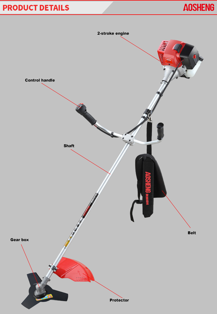 موتور حرفه ای، قدرت قدرت. مصرف کم، راه اندازی آسان. چرخش 360 درجه دسته کنترل راحت و کمربند اسفنجی. سر صاف کننده می تواند عرض برش 460 میلی متری را ارائه دهد. قطر تیغه آلیاژی 10 اینچ است. شف...