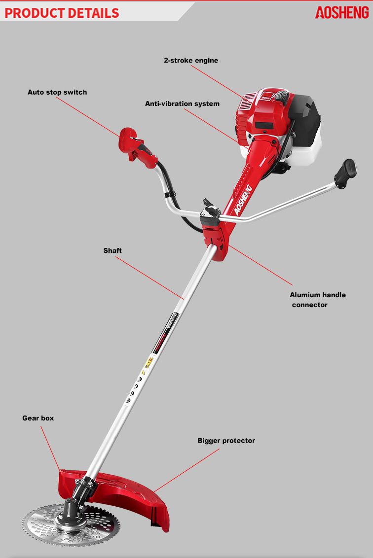 موتور با کارایی بالا، حجم 33 سی سی است. استفاده حرفه ای زمین های بایر را باز می کند اندازه لوله 26 میلی متر * 1.5 میلی متر، شفت انعطاف پذیر استحکام. عرض برش 420 میلی متر است طول عمر بیش...