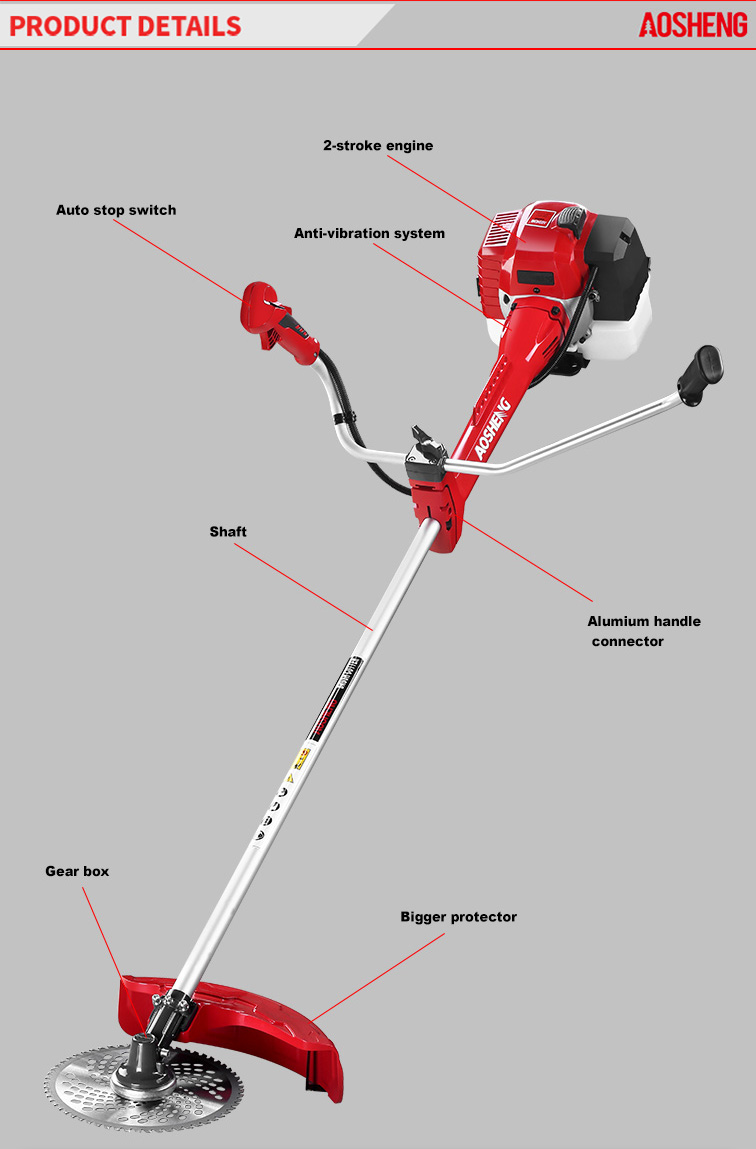 موتور حرفه ای، قدرت قدرت. مصرف کم، راه اندازی آسان. چرخش 360 درجه دسته کنترل راحت و کمربند اسفنجی. سر صاف کننده می تواند عرض برش 460 میلی متری را ارائه دهد. قطر تیغه آلیاژی 10 اینچ است. شف...